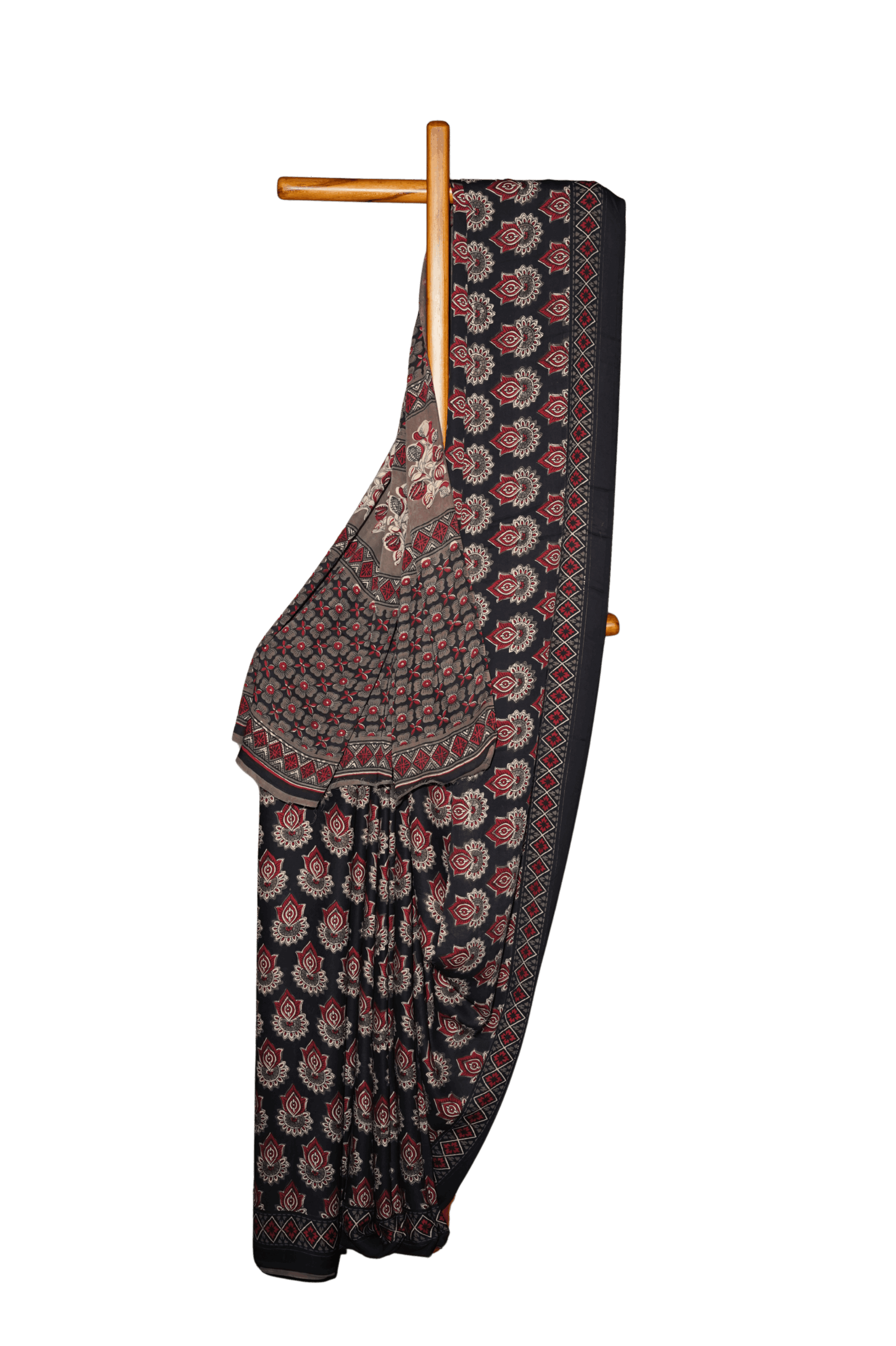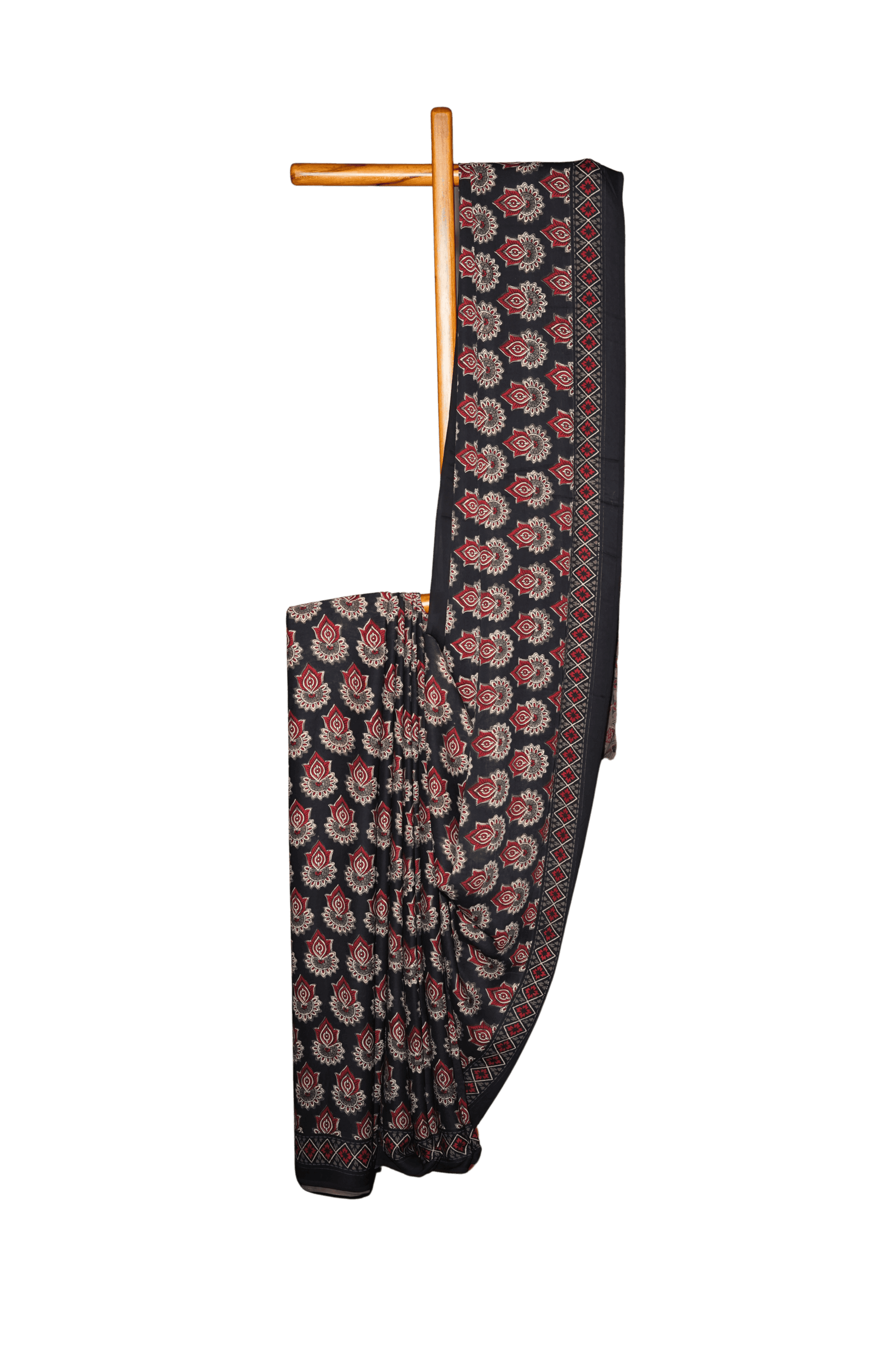 - Colour: Black base with Maroon, Grey & Cream Block Print