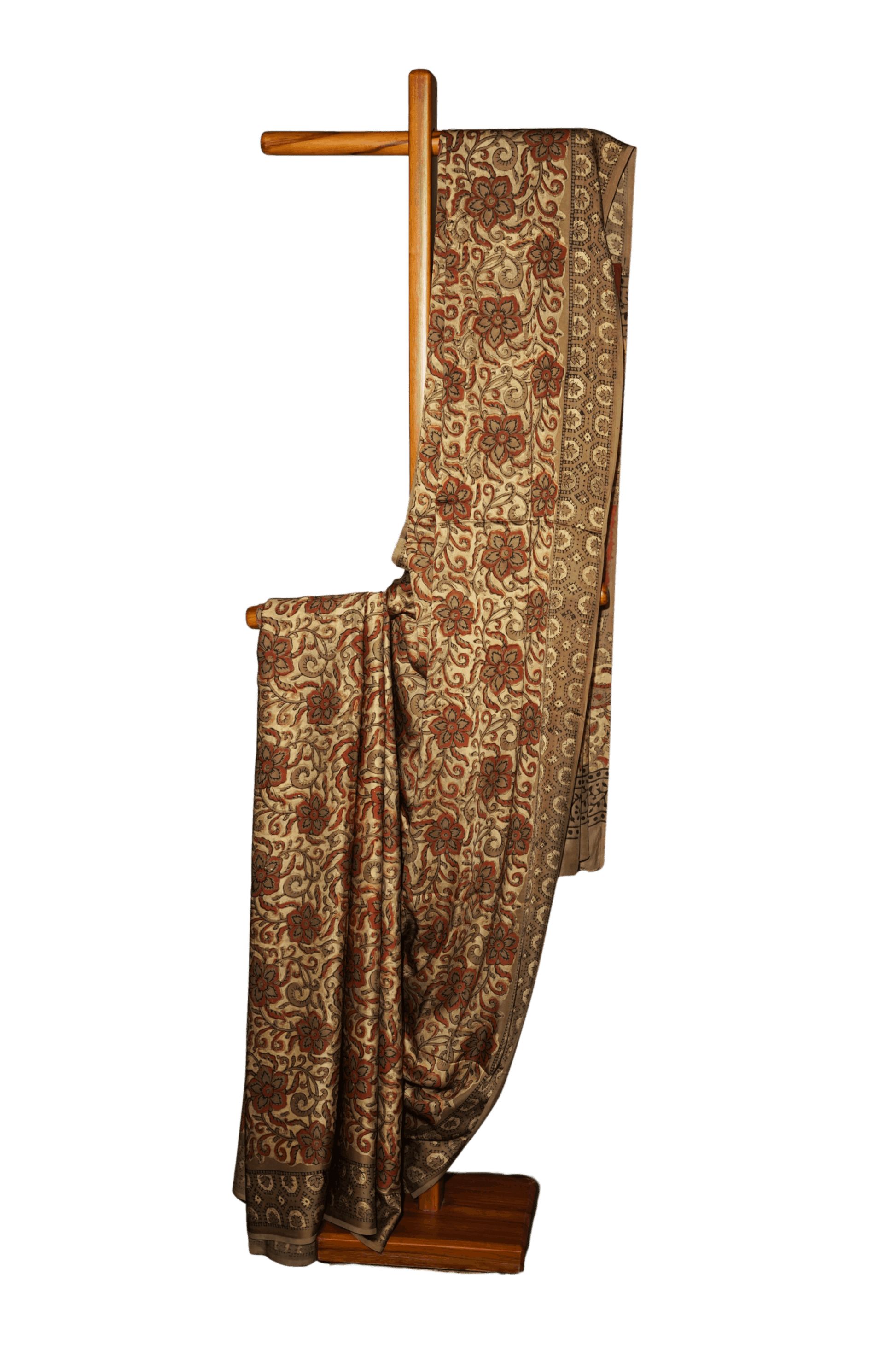 - Colour: Blend of Sepia brown, floral highlights & wavy patterns with muted ochre & rust-orange tone.