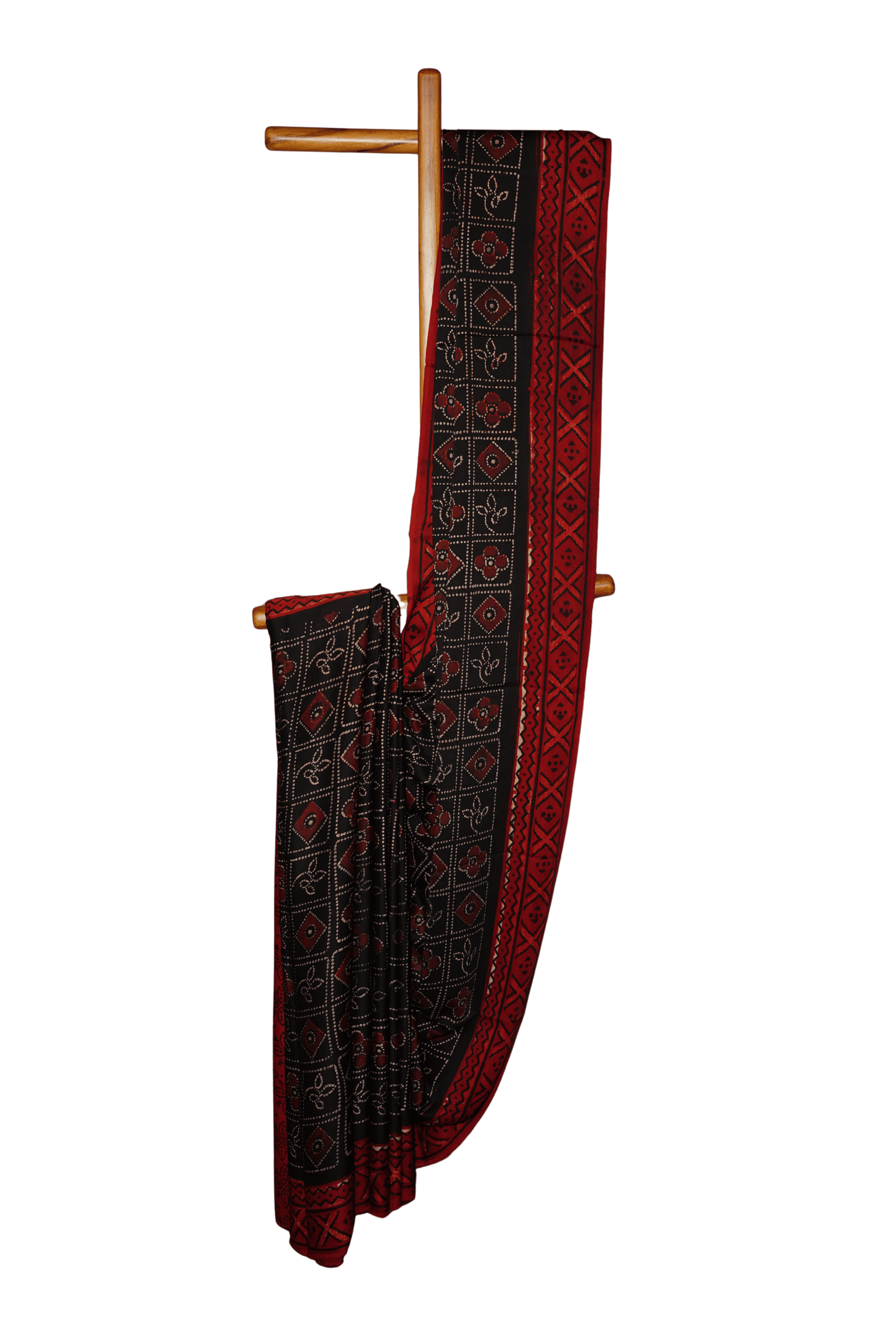 - Colour: Deep Madder Red & Black intricate patterns are highlighted with ivory dots