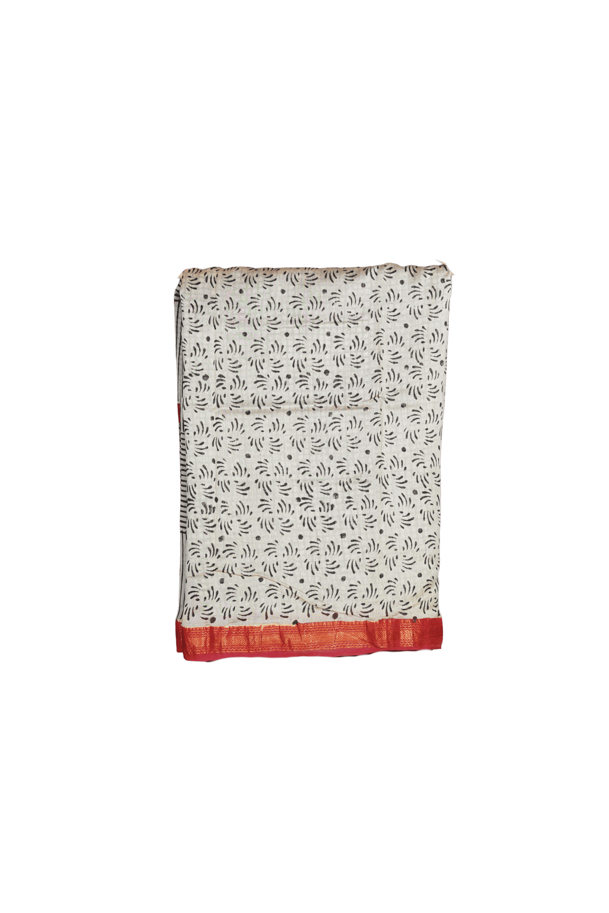 Colour: Black & White Geometric Print with Dull Red Boarder