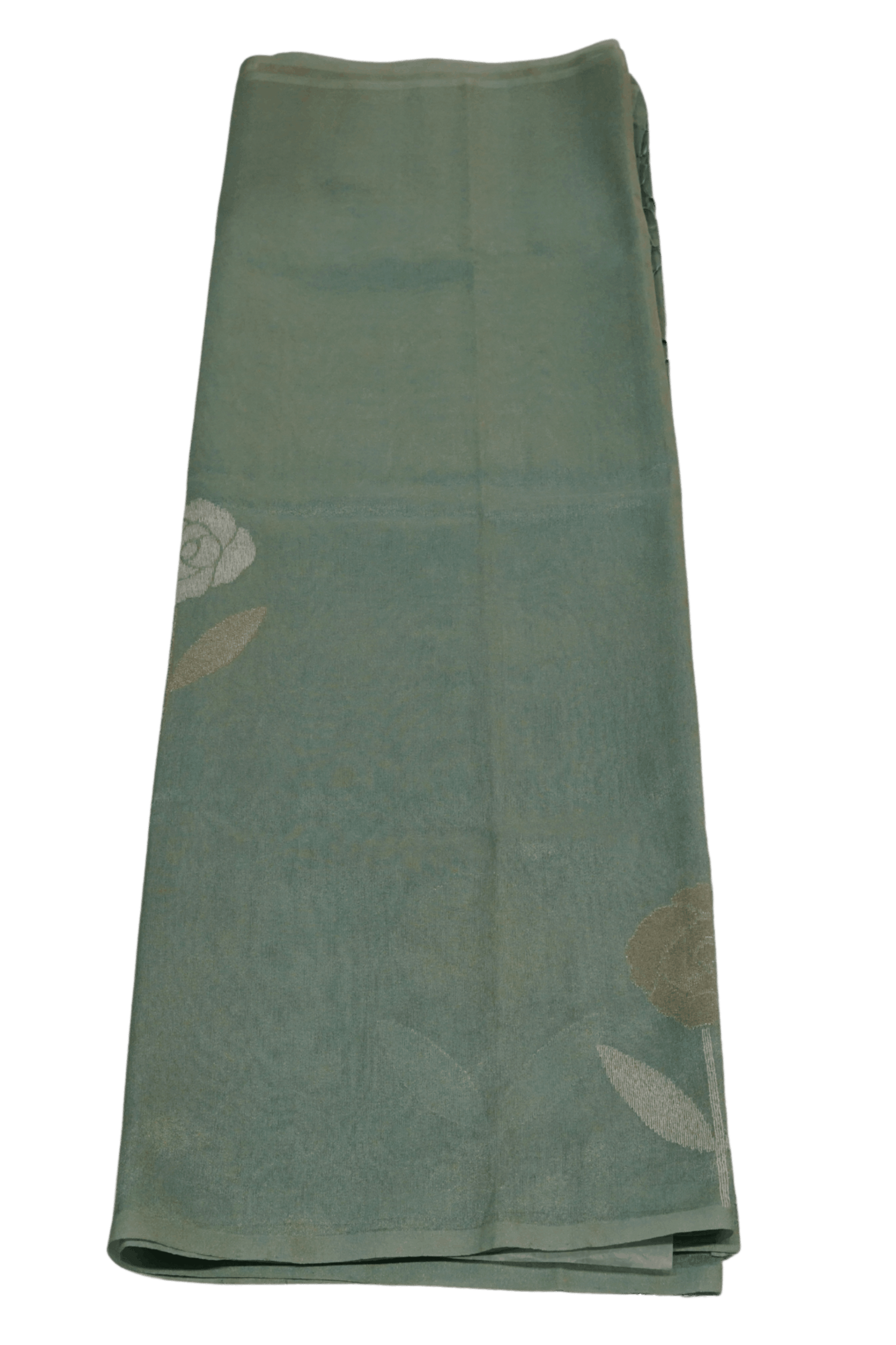 - Colour: Sage Green with a metallic undertone. Dual Tone Zari Motif (Silver & Golden)