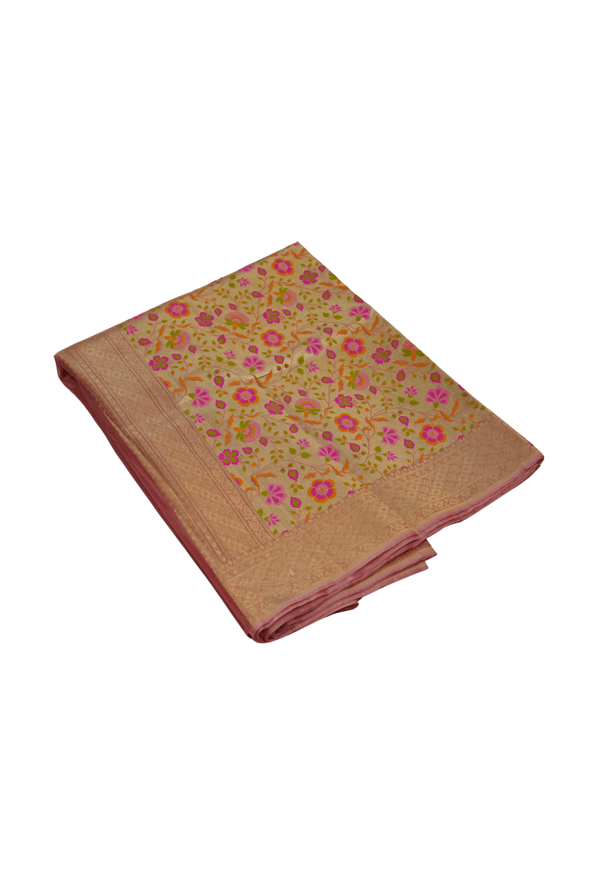 - Colour: Light Coral, peach, light green with antique zari stripes and on boarder. Pathani Palla completes the grace of saree.